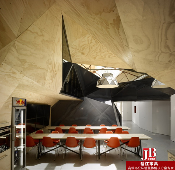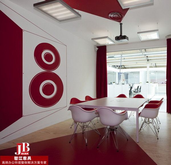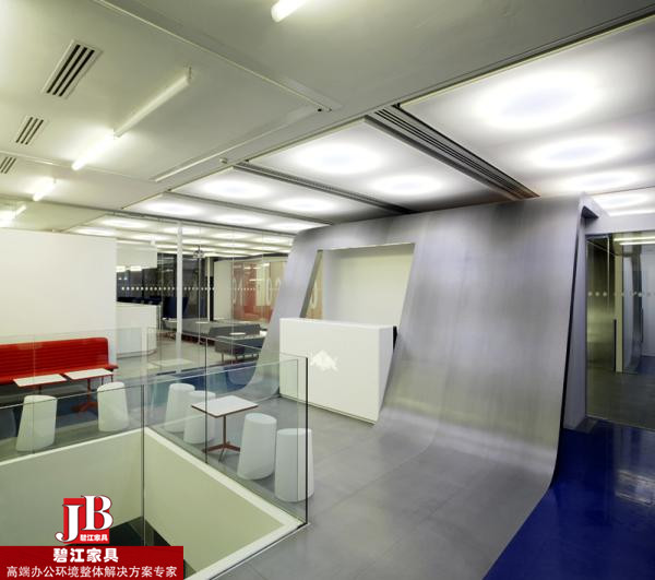 上海辦公家具廠——碧江辦公家具設(shè)計(jì)人員在對(duì)紅牛飲料上海分公司內(nèi)部辦公家具設(shè)計(jì)上,十分注重紅牛飲料的理念和空間感覺,并盡可能的將其融合于一體,在體現(xiàn)運(yùn)動(dòng)感覺的室內(nèi)空間設(shè)計(jì)上,設(shè)計(jì)師利用山崖、滑板坡道等的抽象幾何形狀來充填室內(nèi)空間,建立了一個(gè)半開放的空間形式,從而體現(xiàn)出空間的別樣味道。