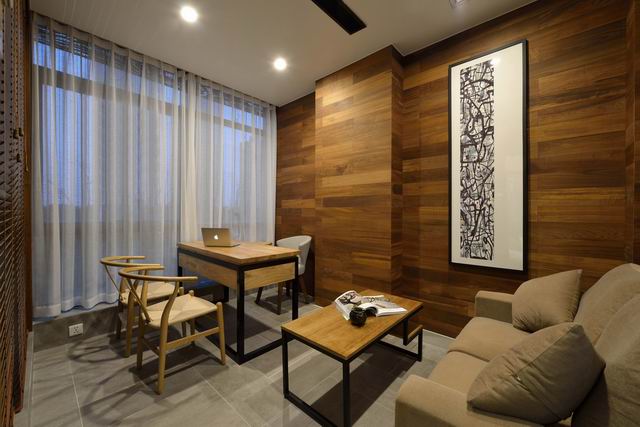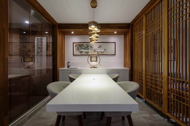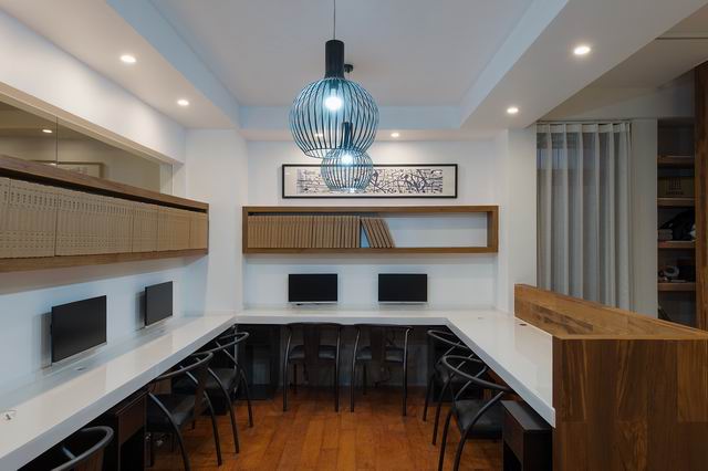 上海辦公家具廠——碧江辦公家具為了突出一野設(shè)計(jì)公司的主題,公司入口處的墻面內(nèi)嵌的字深深印入腦海,入口處的地面拼花磚定制轉(zhuǎn)也注入了“一野設(shè)計(jì)”四個(gè)大字。一走進(jìn)工作室左手邊就是會(huì)客接待區(qū)域,地面鋪設(shè)青灰色地磚,墻面掃白掛畫,木質(zhì)燈具,簡(jiǎn)單大方,深灰色的布藝沙發(fā)以及官帽藤椅,具有個(gè)性的靠枕,有著中式代表性的方幾,一套茶具擺在上面,用鏤空木質(zhì)板把空間分隔開(kāi)來(lái),再走近一看整個(gè)空間就豁然開(kāi)朗了,首先一個(gè)大島臺(tái)映入眼簾,島臺(tái)是用木地板制成,上方的燈具也是自己設(shè)計(jì)的,中間吊掛起來(lái)的朽木是一大亮點(diǎn)。島臺(tái)的左右兩邊都是辦公區(qū)域,靠窗角落里的干枝樹(shù)以及三個(gè)榆木書架更加彰顯了中式的味道,兩堵檔案墻記載著客戶與我們共同走過(guò)的路程。