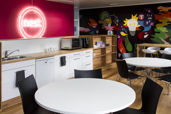 Nest茶水間,下午茶時(shí)間,這里總是擠滿了人,勞累了一天,可以說(shuō)下午茶時(shí)間是員工們最輕松的一刻。彼此在談心的間隙,互相交流交流工作上的“懵懂”,或許問(wèn)題就在這一刻得以解決,也或許生活上的煩惱就能在此刻得到安慰與幫助。