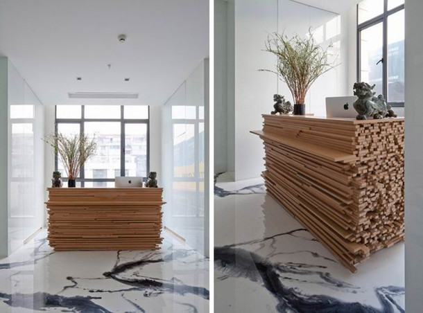 上海辦公家具廠家——碧江辦公家具最終敲定下來的整體辦公家具解決方案是:讓辦公室的內(nèi)部空間以一種特殊造型的辦公桌,給予觀者視覺沖擊力,在功能上也充分滿足一個公司的功能需求,竹林形成了天然氧吧,在空間上也形成一種分隔,分割著區(qū)域,隔而不段,讓空間更加富有層次;簡單的造型及本身的結(jié)構(gòu)構(gòu)成了空間的現(xiàn)代簡約感,材質(zhì)本身的質(zhì)感和顏色顯的更加溫暖,竹林也讓空間更加富有趣味。入口的接待臺由制作辦公桌的廢棄的材料組成,環(huán)保再利用也是我們設(shè)計的一個方向,地面和餐吧臺的TK樹脂材料水墨自由的流動在空間里,既生動又有韻味。下面就讓我們一起來看看上海辦公家具廠家——碧江辦公家具是如何來為JW & ASSOCIATES設(shè)計事務(wù)所打造整體高端辦公家具環(huán)境的!