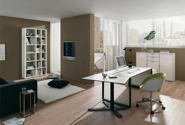 簡(jiǎn)簡(jiǎn)單單的辦公空間里沒有多余的裝點(diǎn),一個(gè)立式文件柜加上一套不是那么張揚(yáng)卻又簡(jiǎn)約時(shí)尚的辦公桌椅,奶白色的茶水柜上還有一株小小的綠植。這個(gè)場(chǎng)景是不是覺得在哪好像見過,那么的熟悉,好好想想家里的小客廳是否跟這個(gè)辦公環(huán)境有點(diǎn)相似呢?