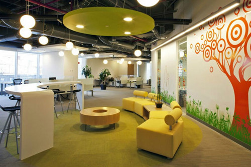 如果說你不太喜歡紅色的辦公環(huán)境,那么充滿生機的綠色呢?這個主要是以生命色為主題的辦公環(huán)境,現(xiàn)代職場中年輕人大多時間都是在家與辦公室之間,生活在兩點一線空間里,親近大自然已成為了部分人的小“奢望”。這不上海辦公家具設計公司——碧江家具發(fā)福利了!墻壁上的樹伯伯,還有一株株綠植,天花板的吊燈,淺綠色的軟體辦公家具,全都是大自然的氣息,在這樣的辦公環(huán)境里工作是不是覺得是一種享受呢?