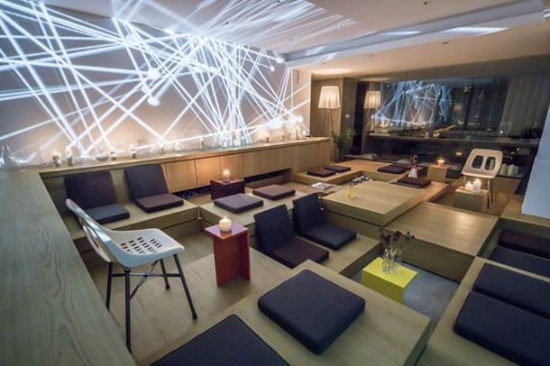 聚會——聚會是設(shè)計(jì)師們在一起經(jīng)常舉辦的,每到周末,空間變化成為另一番景象,當(dāng)做辦公空間中使用的前臺接待臺變?yōu)榭犰诺腄J臺,擺滿各種酒水的長吧臺,7米長的投影演繹各種迷幻圖像。