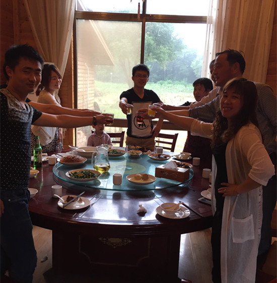 逛了一上午,眾男神女神的肚子早已開始了“青蛙叫”了,即便再餓,大家也不忘吃飯前在農(nóng)家樂的一個(gè)合影!
