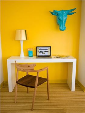 綠色的牛頭飾品給整個(gè)空間增加了不少的藝術(shù)氣息!