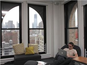 FourSquare 是紐約最大、最熱鬧的創(chuàng)業(yè)公司。這個移動簽到應(yīng)用由 Dennis Crowley 和 Naveen Selvadurai 創(chuàng)建于 2009 年,并且到目前為止已經(jīng)融資 7000 萬美元。目前該應(yīng)用有 2000 萬用戶,25 億簽到記錄,同時每天新增簽到 500 萬。該公司現(xiàn)在有 135 名員工,大多數(shù)都在百老匯 568 號的 10 樓辦公。同一棟樓里還有 Equinox、Thrillist 和 ZocDoc 等公司。 BusinessInsider的記者周二造訪了 FourSquare 的辦公場所,因此大家有機(jī)會一起看看這家創(chuàng)業(yè)公司辦公環(huán)境。