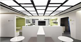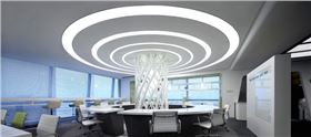 中心休閑辦公區(qū)采用光與型的結(jié)合營(yíng)造出沖擊波般的視覺(jué)張力,象征著創(chuàng)業(yè)思想的無(wú)線(xiàn)延伸發(fā)展。