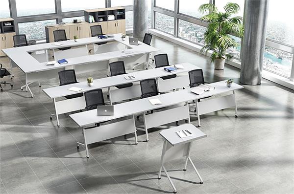 白色板式學(xué)生辦公折疊帶輪多功能員工會(huì)議培訓(xùn)條桌椅組合