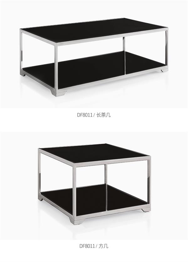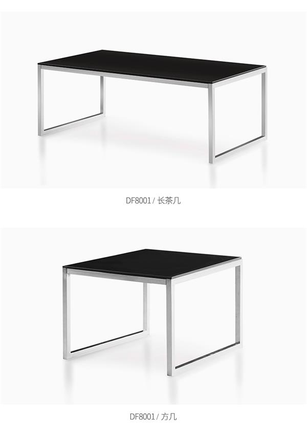黑色鋼化玻璃茶幾不銹鋼長(zhǎng)茶幾辦公區(qū)接待會(huì)客辦公家具